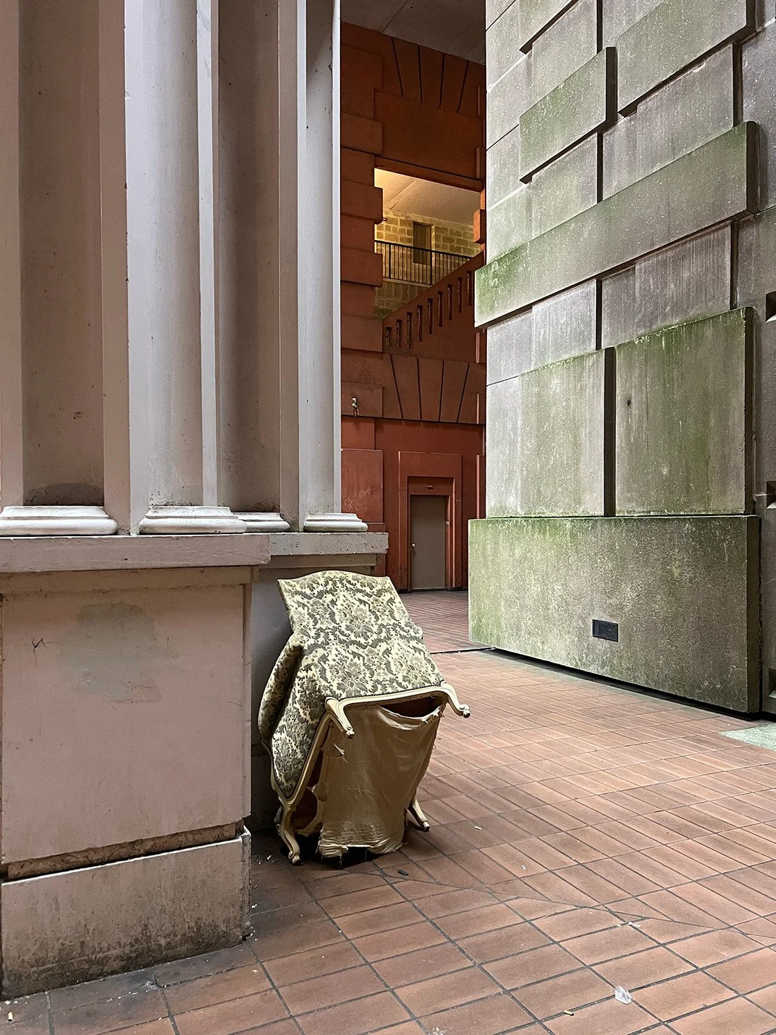 PALAZZO I (2025). From series of architecture inspired sculptures. Wood, metal. Photo Hanna Galtat